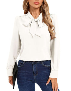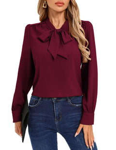بلوزة بأكمام طويلة مع ربطة عنق على شكل فيونكة