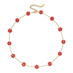 Gold Necklace with Pearl and Floral Crystal - Free Size, Red image