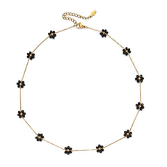 Gold Necklace with Pearl and Floral Crystal - Free Size, Black image
