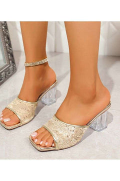 صندل بكعب عريض مفتوح من الأمام مزين بالدانتيل