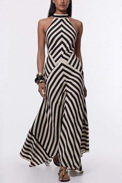 تألقي بإطلالة جريئة مع هذا الفستان الماكسي الأسود والبيج اللافت للنظر، والذي يتميز بنقشة هندسية مخططة عصرية. يبرز تصميمه ذو الرقبة المفتوحة والجزء العلوي الضيق جمال قوامك، بينما تضفي تنورته الطويلة المتدفقة لمسة من الأناقة والحركة. مثالي لمناسبات الصيف أو السهرات الأنيقة، يجمع هذا الفستان بين التصميم العصري والرقي الخالد.
