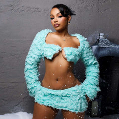 طقم تنورة قصيرة منخفضة الخصر متناسق