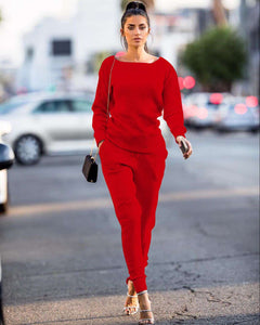 يجمع هذا الطقم بين الأناقة والراحة، فهو يتألف من كنزة فضفاضة بياقة واسعة على شكل قارب وبنطال رياضي ضيق متناسق. سواء كنتِ ذاهبة لتناول فطور متأخر غير رسمي أو ترغبين في الاسترخاء في المنزل، فهذا الطقم هو خيارك الأمثل لإطلالة أنيقة ومريحة. مصنوع من قماش فائق النعومة، وهو مصمم ليمنحكِ إطلالة راقية مع شعور بالراحة طوال اليوم.