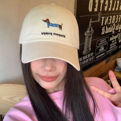 This stylish cap features a charming embroidered design of a playful puppy. Perfect for casual outings, outdoor activities, or adding a cute touch to your everyday look. Comfortable and versatile, it pairs well with various casual ensembles.
