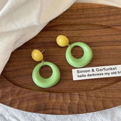 Colorful Retro Hoop Earrings Set - Free Size, Green image