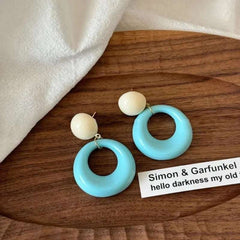 Colorful Retro Hoop Earrings Set - Free Size, Blue image