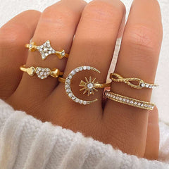 This is a 5 Pieces Heart Star Moon Combination Rings Set