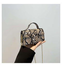 Stylish Snakeskin Pattern Mini Handbag with Chain Strap