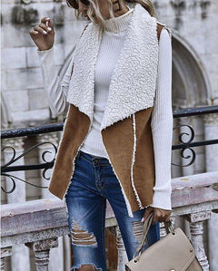 This versatile layering piece combines the rugged charm of faux suede with the luxurious warmth of a soft sherpa lining. The open front design features an oversized collar that drapes effortlessly, adding a touch of elegance to any outfit. Perfect for pairing with your favorite jeans and turtleneck, making it a must-have for the season.