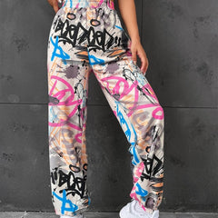 Colorful Graffiti Print Wide-Leg Pants