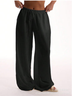 Experience ultimate comfort and style with these chic black wide-leg lounge pants. Crafted from a soft, textured fabric, these pants feature an elastic waistband with a drawstring for a customizable fit. Perfect for relaxed days or casual outings, they offer a trendy yet effortless look that combines comfort with modern fashion. Pair them with your favorite tops for a versatile and stylish ensemble.