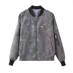 Casual Long Sleeve Bomber Jacket - S, Grey image