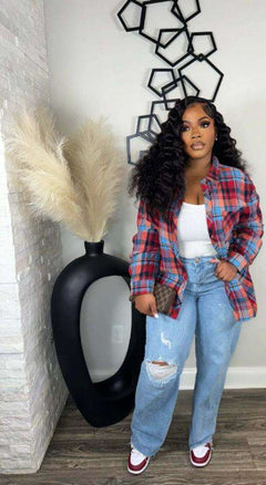Fashion Casual Multicolor Shirt Jacket - L, Multi Red image