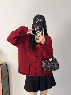 Warm Oversized Knit Cardigan - Free Size, Red image