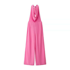 Chic Halter Wide-Leg Jumpsuit - L, Rose image