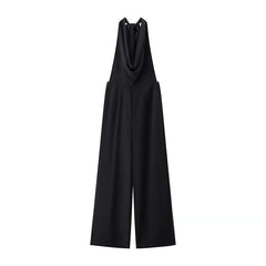 Chic Halter Wide-Leg Jumpsuit - L, Black image