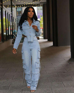 Casual Denim Irregular Two Piece Pants Set