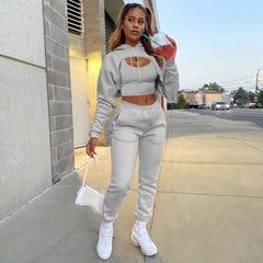 - Crop Top Hoodie Tank Sweatpants 3 piece set