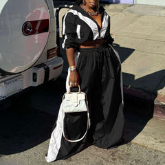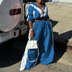The perfect combination of style and comfort. Stay warm and stylish with the long sleeve track jacket, while the elastic waistband on the track pants ensures a perfect fit.