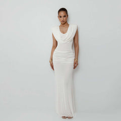 Backless Maxi Dress with Draped Detail - L, Wine Red image