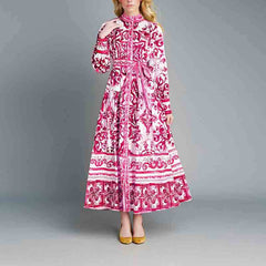 Long Lantern sleeve, Fashion printing design,button front, Round-neck, with a belt accessory,maxi. Suitable for summer. Great for casual, party, club,date,picnic,school,vacation,etc.