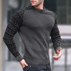 This is a Round Neck Sweater With Patterned Sleeves for every men out there