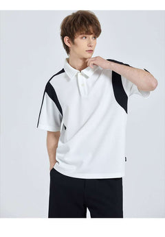 Elevate your casual wardrobe with this stylish men's contrast panel polo shirt. Featuring a classic polo collar with a button-up placket, this shirt blends sporty and sophisticated elements seamlessly.
