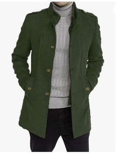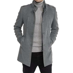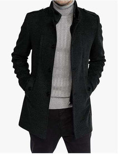 Mens Trench Coat Long Sleeve Stand Collar Single Breasted Pea Coat Casual Mid Long Slim Fit Overcoat with Pockets