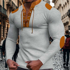 Mens Tee Waffle Shirt Tee Top Long Sleeve Shirt Color Block V Neck Street Vacation Long Sleeve Lace up Patchwork Clothing Apparel Fashion Designer Basic