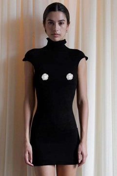 Sleeveless Turtleneck Dress with Embellished Pasties