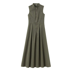 Sleeveless Zip-Front Midi Dress - S, Olive Green image