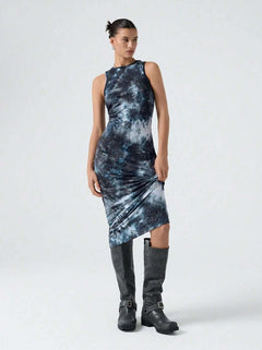 Tie-Dye Sleeveless Dress - M, Dark Blue image
