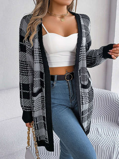 This Autumn Winter Casual Contrast Color Plaid Pocket Long Sleeve Cardigan Sweater Christmas Women's Clothing Is An Indispensable Beautiful Scenery In Cozy Winter.