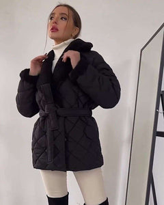 Winter Lapel Plaid Coat Fashion All-match Waist-tied Design Coat For Women Outwear Clothing