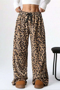 Leopard Print Wide Legs Pants - XL, Multi Brown image
