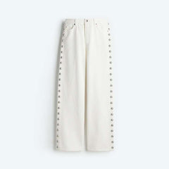 Wide-Leg Pants with Side Studded Detailing - S, White image