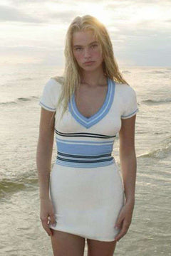 Striped V-Neck Beach Dress