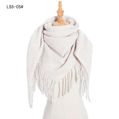 Autumn Winter Warm Scarf Women Solid Color Tassel Square Shawl