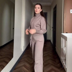 This tracksuit features a modern aesthetic that can be dressed up or down. The clean, sleek look with solid colors makes it a stylish addition to any wardrobe, perfect for a casual yet stylish look.
