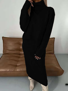 - Turtleneck Sweater Two Piece Dress Maxi Skirt