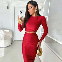 Red solid mid-rise skirt, has slip-on closure and flared hem Package contains: 1 topwear, 1 bottomwear