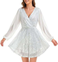 Sequin dresses for women cocktail dress sequin dress shiny evening dresses sexy V-neck lace long sleeve glitter dress cocktail dresses knee-length wedding festive dresses party dresses.