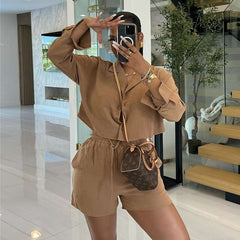 Textured Button-Up Shirt & Shorts Co-ord Set