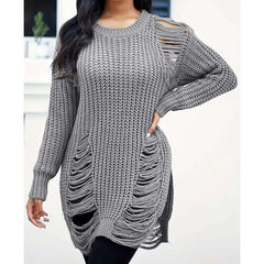 Long Sleeve Ripped Casual Loose Pullover Sweater - L, Grey image