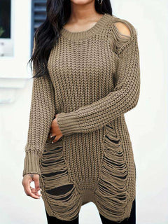 Long Sleeve Ripped Casual Loose Pullover Sweater