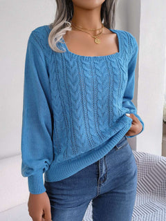 Self Design Scoop Neck Ribbed Pullover - M, Blue image