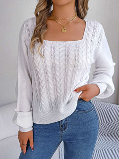 Self Design Scoop Neck Ribbed Pullover - L, White image