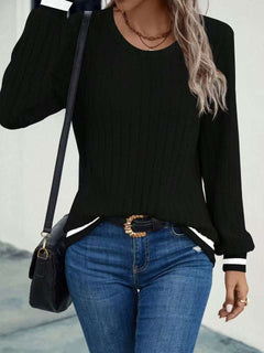 Striped Crew Neck Sweater with Detail