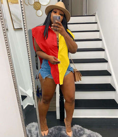 Asymmetrical Two-Tone Button-Up Shirt - S, Red image