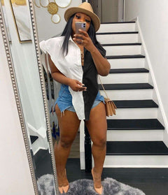 Asymmetrical Two-Tone Button-Up Shirt image 0